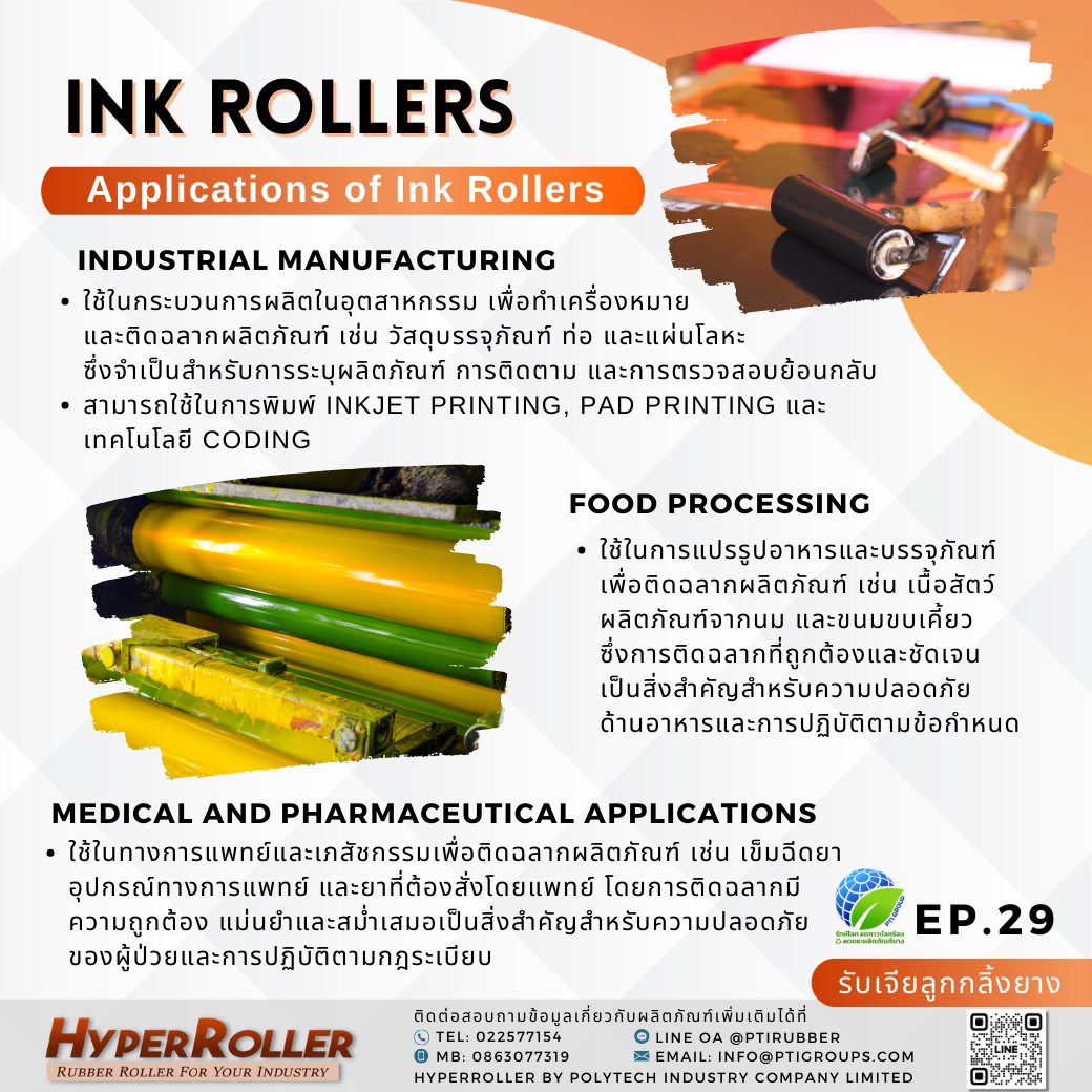 – ลูกกลิ้งหมึกเป็นส่วนสำคัญที่ทำให้การติดฉลากเครื่องหมายมีความชัดเจน ถูกต้องและอ่านได้ ซึ่งจำเป็นสำหรับการระบุผลิตภัณฑ์ การติดตาม และการตรวจสอบย้อนกลับ